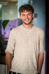 Zijn collega’s omschrijven hem als een spontane en open gast, iemand met wie je altijd even kunt sparren. Precies dat sociale aspect is ook wat hem de meeste energie geeft in zijn werk. Of het nu gaat om een klantgesprek of een brainstorm met collega’s, hij voelt zich op zijn best wanneer er ideeën over en weer vliegen.